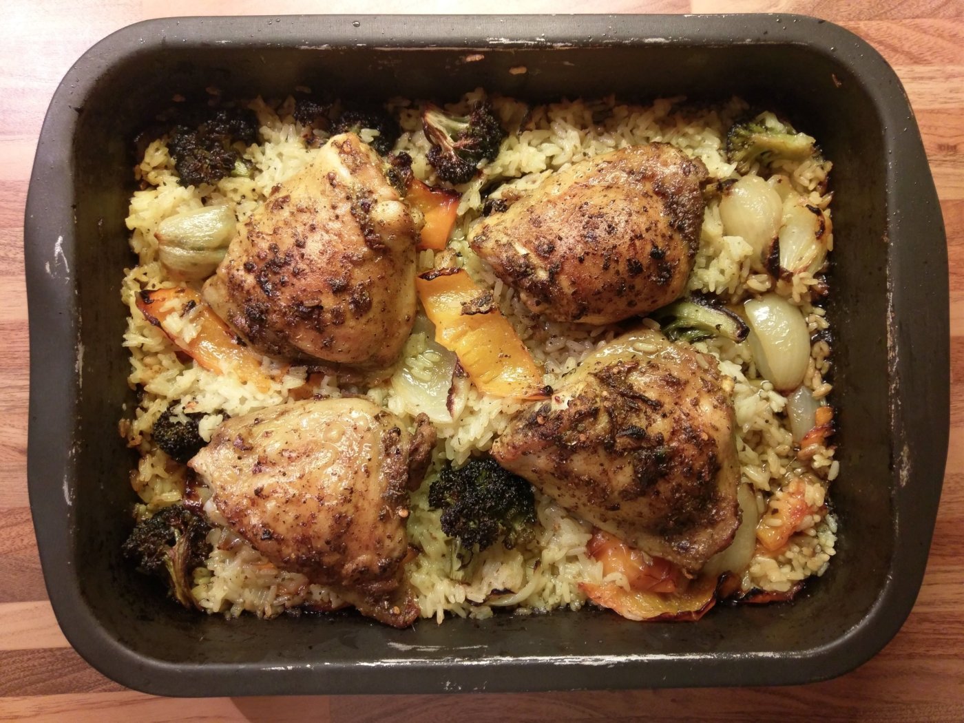 The limit of my imagination is rice. It would be good to eat some rice. I also don’t want to make much of an effort. The best compromise between these two positions is chicken thighs with rice and some other stuff.