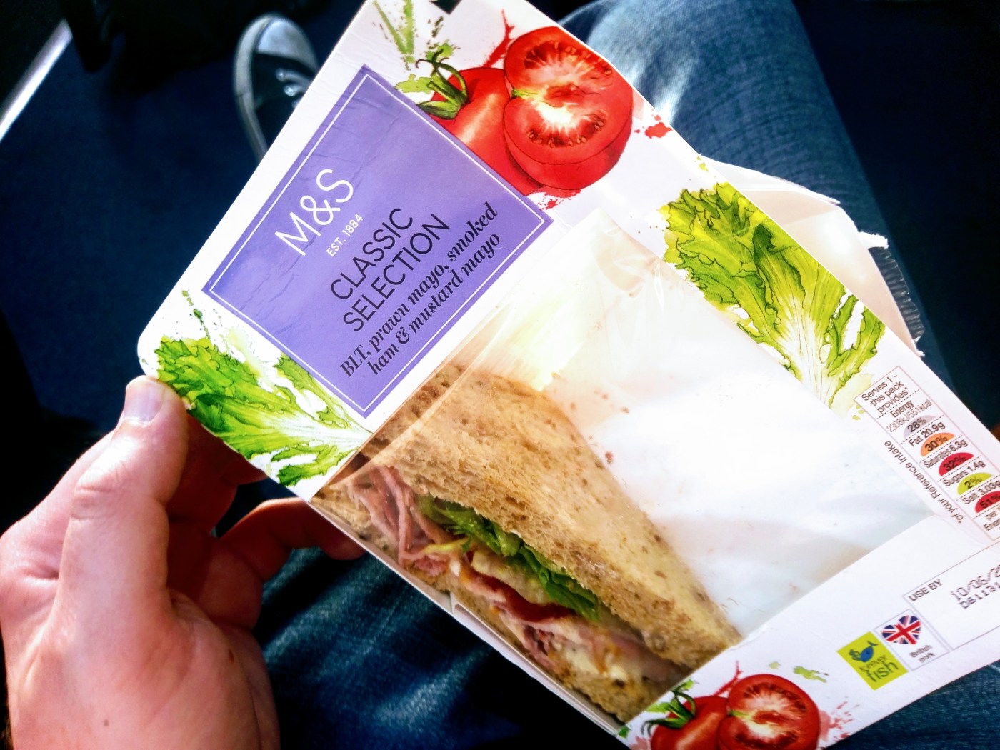 The sandwich shelves are a bit sparse by 7pm, almost as if this is a popular train station from which to commute. The only triple sandwich on offer now is the prawn mayonnaise, BLT and ham and mustard combo, which seems to me a reasonable proposition. As with most triple sandwich deals, it comprises a sandwich I’d eat all day long and two I’d eat cheerfully enough if threatened at gunpoint.