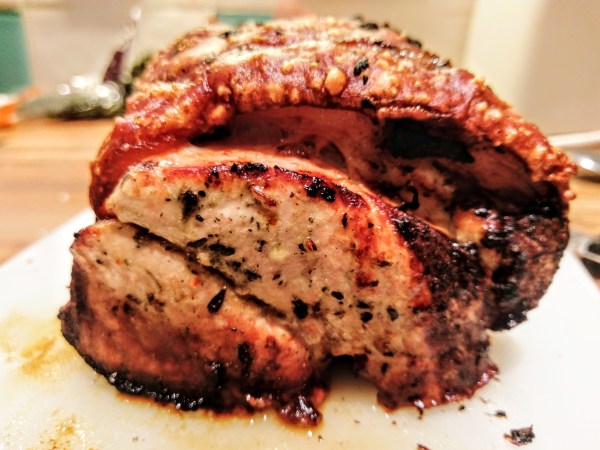 This pork marinade usually suits pesto on the side, but a roast needs gravy, and it worries me that these flavours might be overcome by a gravy. I say "worries": it'd be a blow but I'd probably get over it.
